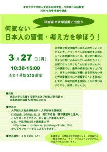 このたび東大FFPは、留学生・外国人研究員向けの集中講座「何気ない日本人の習慣・考え方を学ぼう!」を、人文社会系研究科と共催することとなりました。