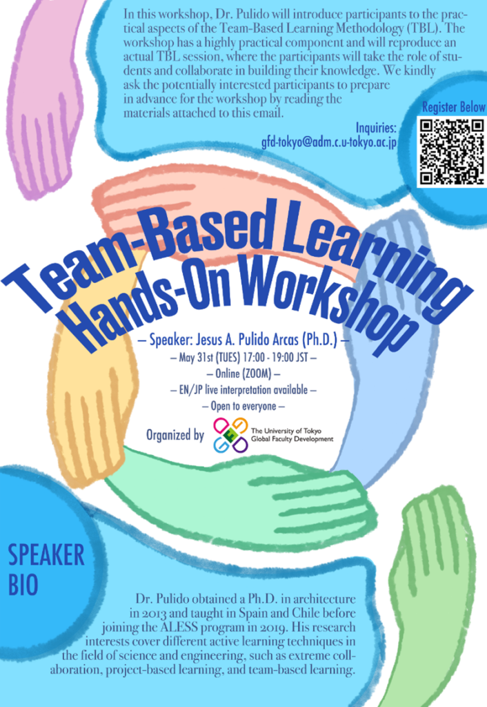 The theme is ” Team-Based Learning Hands-on Workshop ” and the guest speaker is Jesus Pulido Arcas (P.h.D).