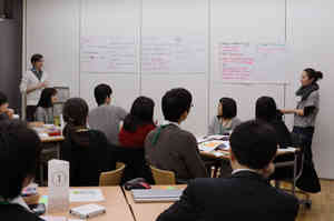 発表のたびに、講師を務める中原淳准教授(大学総合教育研究センター)や栗田佳代子准教授(同センター)から対応策についての講評が入り、終盤には会場全体で発表内容を検討するなど活発な意見交換ができました。
